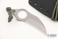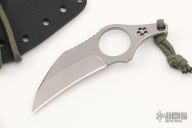 This Snail MKI by DC Munroe features a tumble finished hawkbill blade with notched thumbrest and finger hole, .13" blade stock and 1.03" blade depth. Comes with a kydex sheath .Has some light scuffs, otherwise excellent condition.