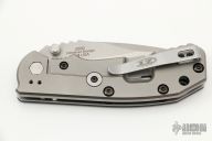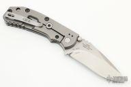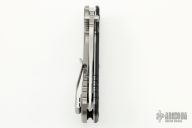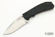 This 0550 Zero Tolerance/Hinderer designed folder features a black G-10 and bead blast titanium handle. The blade is tumble finish with dual thumbstuds. "0550 Hinderer design Made in the USA" stamped on back of blade with serial number 8273. Tip up carry, 4-way reversible. Strong lock up and detent. Comes with original box and papers. Excellent condition.