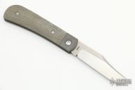 This Benny's Clip slipjoint model by Jack Wolf Knives features a satin finished clip point blade with nailnick. The handle has integral bead blast finish pinched and fluted titanium bolsters and liners, Micarta scales with a stainless spring. Comes with box, metallic tube with Sean Tiffany artwork, leather slip, sticker and microfiber cleaning cloth. New from Maker.
