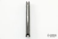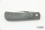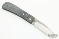 This Benny's Clip slipjoint model by Jack Wolf Knives features a satin finished clip point blade with nailnick. The handle has integral bead blast finish pinched and fluted titanium bolsters and liners, Micarta scales with a stainless spring. Comes with box, metallic tube with Sean Tiffany artwork, leather slip, sticker and microfiber cleaning cloth. New from Maker.