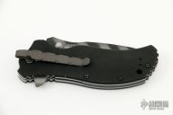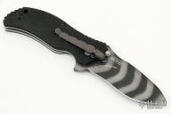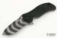 This 0350TS liner lock flipper is a Ken Onion design executed by Zero Tolerance and features a recurved spear-point blade with a tiger stripe finish, stainless steel liners and black G10 scales. It also features the Speed-safe assisted opening system. Has a custom titanium deep carry pocket clip that is 4 way adjustable. Nice function. Has some light scuffs, otherwise good condition. #15727