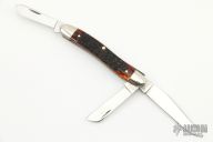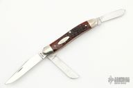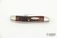 This Stockman by Case Knives features jigged red bone covers, double nickel silver bolster all over nickel silver liners. Satin finish on all three blades. Firm lock up. Light Scuffs and scratches are visible on the handle and blades otherwise the knife is in good working condition.