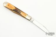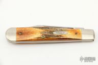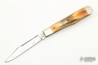 This Trapper by Case features a mirror polished blade with long pull. The handle has nickel silver bolsters, nickel silver shield, brass liners and stainless spring. Comes with original box and papers. Has some light scuffs and scratches, great condition otherwise.
