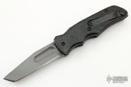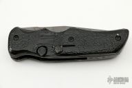 This Prototype Auto by A. Daniel Valois features a bead blasted chisel ground blade with fuller. The handle has "Gator Hyde" rubber scales over titanium liners, steel backspacer. Has a Valois Flush Mount Pocket Clip. Some scratches on blade and frame, has some patina, otherwise good condition. This is one of the last pieces from Daniel Valois's Estate.
