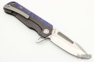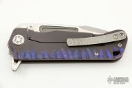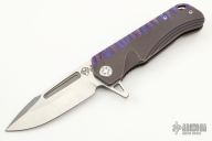 This Proxima by Medford Knife and Tool featured a satin finished spear point blade with fullers and a notched thumbrest and flipper tab. The handle has an anodized and tumbled titanium frame and a tip up pocket clip and a lanyard hole. Includes the original box, hard case and papers. Excellent Condition.