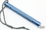 This titanium Kubaton is anodized and knurled with spiked points on one end and a lanyard hole on the other.