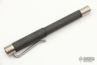 This pen by Warren Thomas is made from carbon fiber and aluminum . The butt of the pen unscrews and has a titanium spike. Excellent condition.