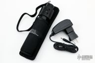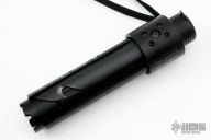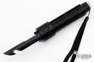 Unique design with flashlight and knife in one package. Knife blade is curved to the contour of the light body. Twist to push open and twist to lock. Blade has gut hook and serrations.  Comes with charging cord with American and European Adapters. Comes with original box, sheath and papers. New From Maker. Blade Steel: 440A
