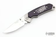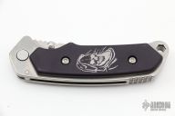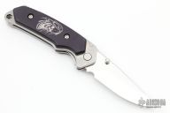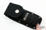 This Folding Alpha Hunter Linerlock by Buck has a mirror polished blade with dual thumbstuds, notched thumbrest. The handle has black aluminum scales, stainless steel frame and liner (lock), and jimped stainless steel back spacer. Lanyard hole at exposed tang. Excellent condition. Comes with Buck nylon sheath with button closure. Excellent condition.