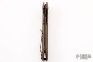 The Zero Tolerance 0450FCZDP is also easy to use. It feels great in hand and smoothly opens due to the use of KVT ball bearings. With the flipper the blade will shoot from the handle, without ever needing a spring. When opened the blade is locked by a very solid framelock. To prevent the titanium from affecting the steel blade the lockbar has been enhanced with a steel insert. As a result the lockup is comprised of steel on steel contact which completely excludes any wear and tear. This insert serves an additional purpose: it also works as a ‘overtravel stop’. This means that the lock cannot be overstretched when unlocked. As a result the lock will stay in perfect condition for years to come.