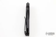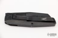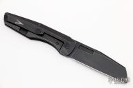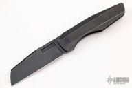 This Axon Framelock Folder by Vero Engineering features a blackwashed blade with notched thumbrest and thumbhole. The handle has a blackwashed titanium frame, tip up titanium clip with hidden screws, titanium backspacer. Rides on bearings, nice detent, lockup and blade seating. Comes with zippered case and COA. has som xcellent condition.
