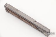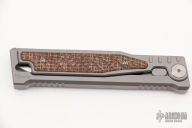 • Bead blasted titanium handle with textured Burlap Micarta.