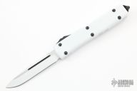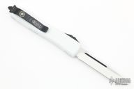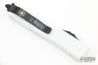 This Storm Trooper Ultratech OTF by Microtech Knives features a s/e white cerakoted blade with a standard edge and a white cerakoted aluminum handle. Black stainless steel clip. Glass breaker. Serial number 00747 and dated 03/2016. Comes with original box and papers, and Death Star bead. Excellent conditon.