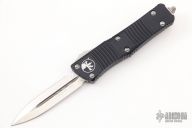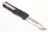 This Troodon by Microtech features a Satin finished double edged blade. Black aluminum handle with glass breaker and stainless steel clip. Dated 07/2018, S/N 192. Comes with original box and papers. Excellent condition.