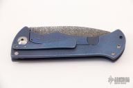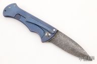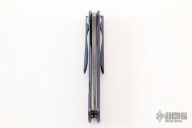This Tracker Dan Bloodshark by John Gray is a collaboration with Tracker Dan, it features a tumble finished blade with large fullers. The handle has an anodized and bark finished titanium frame, with matching tip down titanium clips on both sides, lanyard hole at the butt. Nice detent, lockup and blade seating. Excellent Condition.