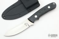 This K-50 Safari Skinner by Dozier Knives features a satin finished blade, .125" blade stock and 1.018" blade depth, full tang construction. The handle has black linen micarta scales with aluminum pins and lanyard hole. Comes with a kydex sheath. New from maker.