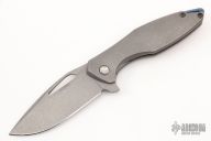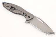 This Arius by Koenig knives features an acid stonewashed blade with thumbhole and flipper. The handle has a tumbled titanium frame with a matching titanium tip up clip with hidden screws, anodized titanium backspacer. Has ceramic bearings and a ceramic detent ball. Nice detent, lockup and blade seating. Comes with original box and COA 6/13/16. Excellent condition.