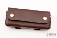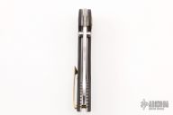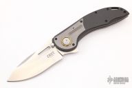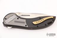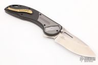 Designed by knife innovator Flavio Ikoma the XOC might be considered overkill but Ikoma thinks that bigger is better and in this case he might be right. This limited edition folder is the first design in the world to house the Deadbolt locking mechanism. This massive flipper comes with titanium inlaid carbon fiber handles and high performance CTS-XHP Stainless Steel blade. Blade: The XOC exhibits the curves and lines Flavio Ikoma is known for with a large, sweeping recurve blade of CTS-XHP for high-end performance. The blade deploys fast and smooth via an index flipper or can be opened utilizing the thumb stud pins or "shackle key" blade cutout. A beautiful satin finish adds to the custom feel of this limited production piece. Handle: The clean lines of the carbon fiber handles are elegant and ergonomic in the hand. A titanium inlay near the blade houses the Deadbolt locking mechanism that is as simple as pushing a button to operate while delivering robust strength. Steel pegs interlock with the blade when it is deployed to yield strength that gives uncompromising reliability even under serious weight. A brass colored pivot collar adds another custom detail contrasting with the grey titanium. The "shackle key" hole at the pommel end allows for easy lanyard attachment. Carries via a right hand, tip-up, stainless steel carry clip. Comes with original box, sheath, papers. Excellent condition.
