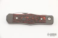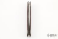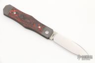 This Vampire Jack (Coffin) slipjoint model by Jack Wolf Knives features a satin finished drop point blade with nailnick. The handle has integral bead blast finish pinched and fluted titanium front and rear bolsters and liners, Fat Carbon scales with a stainless spring. Comes with box, metallic tube with Sean Tiffany artwork, leather slip, sticker and microfiber cleaning cloth. New from Maker.