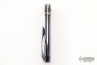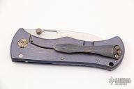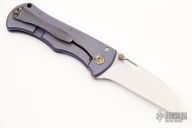 This Rostrum by John Gray features a satin finished Magnacut blade with thumbstuds and thumbhole. The handle has an anodized and bark finished titanium frame with a matching backspacer and tip up titanium clip. Nice detent, lockup and blade seating. New from maker at the 2022 Blade Show West.