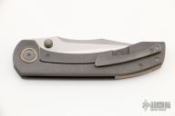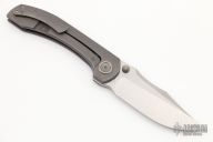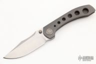 This Raptor by Brian Brown features a satin finish clip point style blade with dual thumbstuds. The handle has a titanium frame with anodize finish pivot collars, tip up clip and backspacer. Comes with a zippered case and COA. Excellent condition.