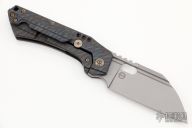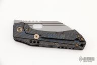 Teryl Todd (A.K.A. Zelrick42 on YouTube) and brother Seth are the creative force behind Todd Knife and Tool. As the US representative for WE Knives, it only makes sense that Teryl would take TKT designs to WE for production. The Roxi 3 is a powerful, tank-like Wharncliffe with modern front flipper deployment and heavy-duty titanium frame lock construction. This version comes with a stonewashed CPM-S35VN blade and tiger stripe flamed titanium handle.