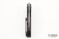 Handle: Dual slabs of tiger stripe flamed titanium make up the handle, milled for a more contoured feel while being relatively flat in carry. Hole milling lends some extra style, while the full-length tiger stripe flamed back spacer is jimped for added traction and style. An integral frame lock with hardened steel lock face and lock bar stabilizer provide secure lockup for use.
