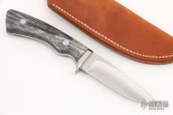 "I have been a knife maker since 1983. I got my start watching George Herron in his shop. He has always been a mentor, answering all of my questions and helping with the little problems of knifemaking. Most of my work is geared toward hunters. Since the most important part of the hunt is not the gun, no matter how much it costs, but a knife that will get the job done comfortably and quickly. I also build a few boots and fighters. All blades are ATS-34 that are professionally heat-treated to a Rockwell 59. All guards, bolsters, and pins are 303 Stainless. All knives are serial numbered. The sheaths are pouch type and are wet-formed to fit each knife."