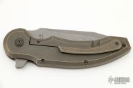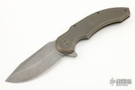 This Ferox by WE Knife Company features a spear point blade with swedge and a flipper. The handle is comprised of a machined, anodized and stonewashed titanium frame over a matching backspacer. Matching tip up clip with titanium hardware. Includes original box, zippered case and papers. Has some light stains on the blade, otherwise excellent condition.