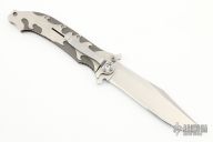 This Cuda Maxx 5.5 by Camillus is a Darrel Ralph design, features a stonewashed blade. The handle has a milled and two-tone titanium frame with a tip down stainless steel clip. Nice action, lockup and blade seating. Assisted opeing. Has a few light scratches, otherwise excellent condition. Comes with a zippered case.
