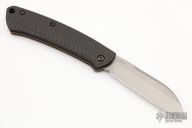 This Benchmade Proper slip joint folder is a modern take on a classic gentleman's knife design. This model features Carbon fiber covers paired with a stonewashed sheepsfoot blade made from premium S90V stainless steel. Skeletonized stainless steel liners offer reduced weight for comfortable everyday carry in a pocket or pack. A lanyard hole in the handle accommodates key ring or lanyard attachment. Excellent condition.
