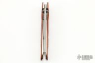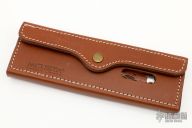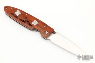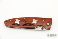 This linerlock folder by Mcusta features a VG-10 blade marked "MCUSTA, SEKI JAPAN". The handle has cocobolo scales with stainless steel liners. Comes with original leather case. Excellent condition. #046