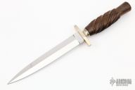 This Boot Dagger by Dan Dagget has a mirror polished dagger style blade with a hidden tang construction. .179" Blade Stock. .990" Blade Depth. The handle features a nickel silver guard with a wood grip. Excellent Condition.
