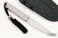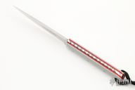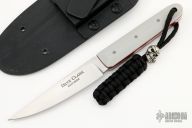 This Mini Tanto by David L. Clark features a hand rub satin finished blade with full tang construction, .129" blade stock and .816" blade depth.  The handle features gray G-10 scales with red G-10 liners. Fileworked tang spine. Includes a kydex sheath and COA.  New from maker!