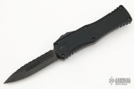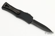 This Hera by Microtech Knives features a double-edged DLC stonewashed blade with a fully serrated edge and dual fullers. The handle has a black aluminum frame with a tip down DLC titanium clip with ceramic ball inset. Dated 03/2022 and s/n 909. Comes with original box and papers. Excellent condition.