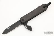 Minimalist EDC style meets maximized functionality in the Ellis folding knife from James Brand. This Ellis model sports a black G-10 handle and a black blade with a partially serrated edge. The lightweight G-10 handle houses the blade and a bonus bottle opener/screwdriver tool. Both the knife and tool lock up with a secure lockback mechanism. Manage you everyday task in style with the Ellis from James Brand.