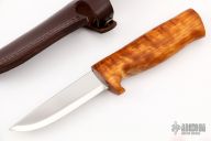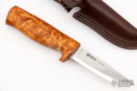 Fossekallen has the same well proportioned shape as its bigger brother – sanded by hand to a satin finish and well-shaped to offer comfort during long carving sessions. It offers a secure grip with a significant finger stop. A perfect all-round knife for small to medium size hands.