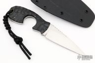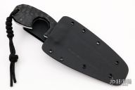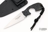 This knife by David Lancaster Clark features a hand rub satin finished blade with fileworked spine, .156" blade stock and 1.264" blade depth, full tang construction with black  G-10 scales, has a fileworked tang. Comes with a kydex sheath. New from maker.