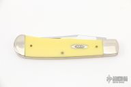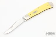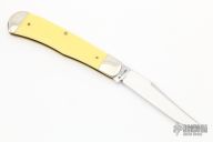 A Tony Bose BackPocket by Case Knives features a mirror polished blade with nail nick. The handle has polished nickel silver bolsters, yellow covers with nickel silver escutcheon, brass liners and stainless steel spring. Comes with a Case box. Excellent condition. Marked inside the frame with "Long Tail Case XX" logo.