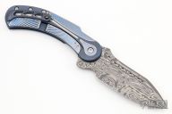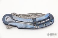 The Field Marshall from Steelcraft Knives features a Draupner Damasteel blade, notched thumbrest, fullers and a flipper. The handle has an anodized and milled titanium frame with a matching backspacer and tip up clip with ceramic ball and hidden screws. Ceramic IKBS. Comes with a zippered case. Nice detent, lockup and blade seating. Has a couple light marks. Excellent condition.