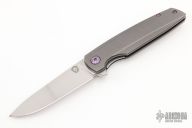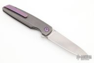 This Specter by Holt Bladeworks features a high polish tumble finish blade with a notched thumbrest and flipper tab.  The handle features a milled titanium frame with anodize finish tip down pocket clip and hardware. Nice detent, lock up and blade seating. Includes the original box and papers. Light scratches are visible on the pocket clip otherwise the knife is in excellent condition.