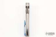 This Morpheus by Holt Bladeworks features a polished finish blade with a notched thumbrest and flipper tab. The handle features a milled titanium frame with anodize finish tip down pocket clip and hardware. Nice detent, lock up and blade seating. Includes the original box and papers. Excellent condition.