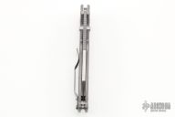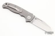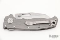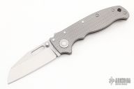 The AD20.5 by Demko Knives features the impressive Shark Lock and an even more impressive price point. The Shark Lock mechanism is situated on the spine of the knife and operated with a ramp-like ‘fin’, allowing you to flip the blade open and closed at will. It's probably the best thing about this knife and design, how quickly it can be deployed and ready for action. It acts as a blade launcher and a little wrist action is all it needs. Comes with original box and extra clip. This one has a stonewashed blade and bead blasted and texture milled titanium handle. Excellent condition.