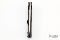 This SSE Flipper from Custom Knife Factory features a stonewashed blade with flipper. The handle has a milled titanium frame, tip up clip and titanium backspacer. Nice detent, lockup and blade seating. Comes with Velcro case and COA. #212. Excellent condition.
