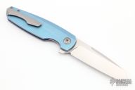 This Haptic by Holt Bladeworks features a tumble blade with a notched thumbrest and flipper tab. The handle features a milled and anodized titanium frame with a titanium tip up pocket clip with hidden hardware. Nice detent, lock up and blade seating. Includes the original box, tools and papers. Excellent Condition.