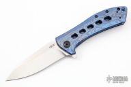 This 0801 Rexford Flipper has a satin finished sheepsfoot style blade with swedge. The handle has a milled anodized titanium with a black stainless steel tip up (RH/LH) clip and lanyard hole. S/N 0056. Excellent Condition.