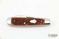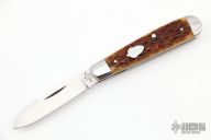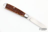 This Slipjoint by TA Davison features a hand rub satin finished blade with nail nick. The handle has stainless steel double bolsters, jigged bone covers with stainless steel escutcheon, stainless steel liners, stainless steel spring. Comes with zippered case. Has half-stop, flush in all positions. Excellent condition. #1973