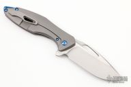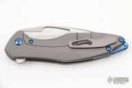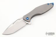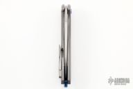 This Arius by Koenig knives features a two-tone blade with thumbhole and flipper. The handle has a nicely milled titanium frame with a titanium tip up clip, anodized titanium backspacer. Has ceramic bearings and a ceramic detent ball. Nice detent, lockup and blade seating. Comes with original box and COA January 12, 2022. Excellent condition.