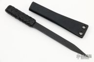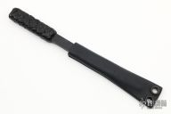 In 1988, he began making specialized knives for use by the military. This turned out to be fortunate turn of events, both for Mick and for the knife using world at large. Mick’s approach was to not get burdened by the weight of past designs. He started with a tabula rasa, a clean slate, informed only by his own experiences and knowledge of what a soldier needed in a knife. The knives he made didn’t look like the hunter-inspired knives seen in most PXs; instead they were almost brutish in their functionality: beefy, solid, and with unbreakable ¼” stock full tangs. These knives were the first indication of his innovative approach: in addition to their utilitarian design, the knives carried a subdued finish and subdued sheaths. No one carrying a Strider knife was going to be spotted because of sunlight glinting off of polished steel or a glossy leather sheath. Soldiers, policemen, and other men going into harm’s way couldn’t buy them fast enough. Mick sampled some good ideas, but made them great. For instance, he was not the first to wrap a knife handle with paracord, but he was the first to do it in a way that was tough enough for sustained infantry use. His knife line grew over the following years to include different varieties of fixed blades, all distinctive and many with specialized uses. But constant in all of them was a disregard for convention, and a desire to try new ideas. An example of this was the Ajax – it featured a very wide blade surface clearly designed to inflict damage. It drew on the weapons carried by Roman legionnaires, yet was modern and usable in the 21stCentury battlefield. Mick also worked on his technical skills, always striving to become better at the physical craft. At the 2002 Blade Show, a group of the best tactical knifemakers in the country decided to compete with each other to produce the most innovative and interesting fixed “battle blade” at the show. Mick’s entry, an incredible integral knife made out of ½” titanium stock with a zippered composite blade, gorgeous handles, and integral guard was the unanimous winner, and effectively retired the competition.