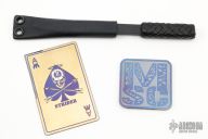 Comes with a titanium MSC patch, Mummert credit card knife and a blade PD1 Strider Nail with leather wrap and kydex sheath. Excellent condition.